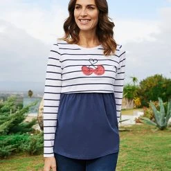 Prenatal T-shirt Premaman Allattamento Con Fantasia Righe E Ciliegie Con Strass