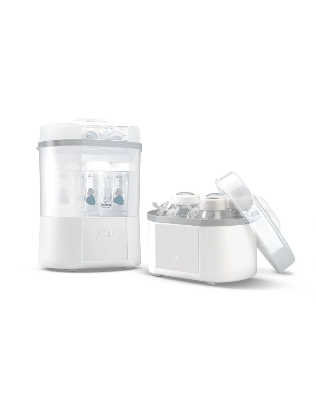 Il nuovo sterilizzatore + Asciugatura Chicco è la soluzione avanzata che combina tre cicli: Sterilizzazione (5 minuti), Dryer (30 minuti) e Sterilizzazione + Dryer (45 minuti). Caratterizzato da un’innovativa piastra rivestita in ceramica, elimina il 99,9% dei germi, garantendo una protezione di 24 ore. Dotato di spegnimento automatico e possibilità di late start fino a 2 ore, oltre ad avviso di decalcificazione. Contiene fino a 6 biberon della linea NaturalFeeling.