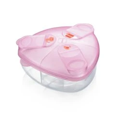 Quando si è in giro è fondamentale avere sempre con sé tutto l’occorrente per il bebè, e portare latte in polvere e integratori può diventare complicato. Per risolvere il problema la soluzione migliore è Milk Box contenitore latte in polvere, un accessorio, moderno, originale e del tutto affidabile. Suddiviso in tre comodi scomparti da 40 g di capacità ciascuno, il porta latte in polvere è leggero e poco ingombrante, tuttavia molto capiente. La particolare forma triangolare rende più semplice versare completamente il contenuto nel biberon, mentre il tappo anti-goccia a scatto assicura un uso facile, senza perdite di prodotto. La forma piatta si adatta a qualsiasi tipo di borsa, rendendo il trasporto semplice. Ciascuno scompartimento può contenere una giusta porzione di latte in polvere e grazie alla base trasparente i genitori possono sempre controllare il contenuto.