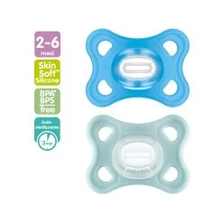 Il ciuccio MAM Comfort risponde alla norma EN 1400 ed è senza BPA e BPS. Dai 6 mesi il proseguimento naturale è con il ciuccio MAM Perfect, con tettarella ultra sottile e flessibile o con il ciuccio MAM Supreme, che coniuga alla tettarella ultrasottile e flessibile una mascherina con ampi fori di ventilazione adatta per le pelli più sensibili. MAM Perfect e MAM Supreme sono stati sviluppati con l’aiuto di ortodontisti e pediatri e testato clinicamente: il collo della tettarella in media il 60% più sottile e 4 volte più flessibile dei normali succhietti, permette una chiusura più naturale della bocca del bambino, riducendo il rischio di disallineamento. Inoltre MAM Supreme ha una mascherina con ampi fori di ventilazione adatta per le pelli più sensibili.