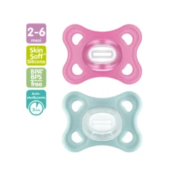 Il ciuccio MAM Comfort risponde alla norma EN 1400 ed è senza BPA e BPS. Dai 6 mesi il proseguimento naturale è con il ciuccio MAM Perfect, con tettarella ultra sottile e flessibile o con il ciuccio MAM Supreme, che coniuga alla tettarella ultrasottile e flessibile una mascherina con ampi fori di ventilazione adatta per le pelli più sensibili. MAM Perfect e MAM Supreme sono stati sviluppati con l’aiuto di ortodontisti e pediatri e testato clinicamente: il collo della tettarella in media il 60% più sottile e 4 volte più flessibile dei normali succhietti, permette una chiusura più naturale della bocca del bambino, riducendo il rischio di disallineamento. Inoltre MAM Supreme ha una mascherina con ampi fori di ventilazione adatta per le pelli più sensibili.