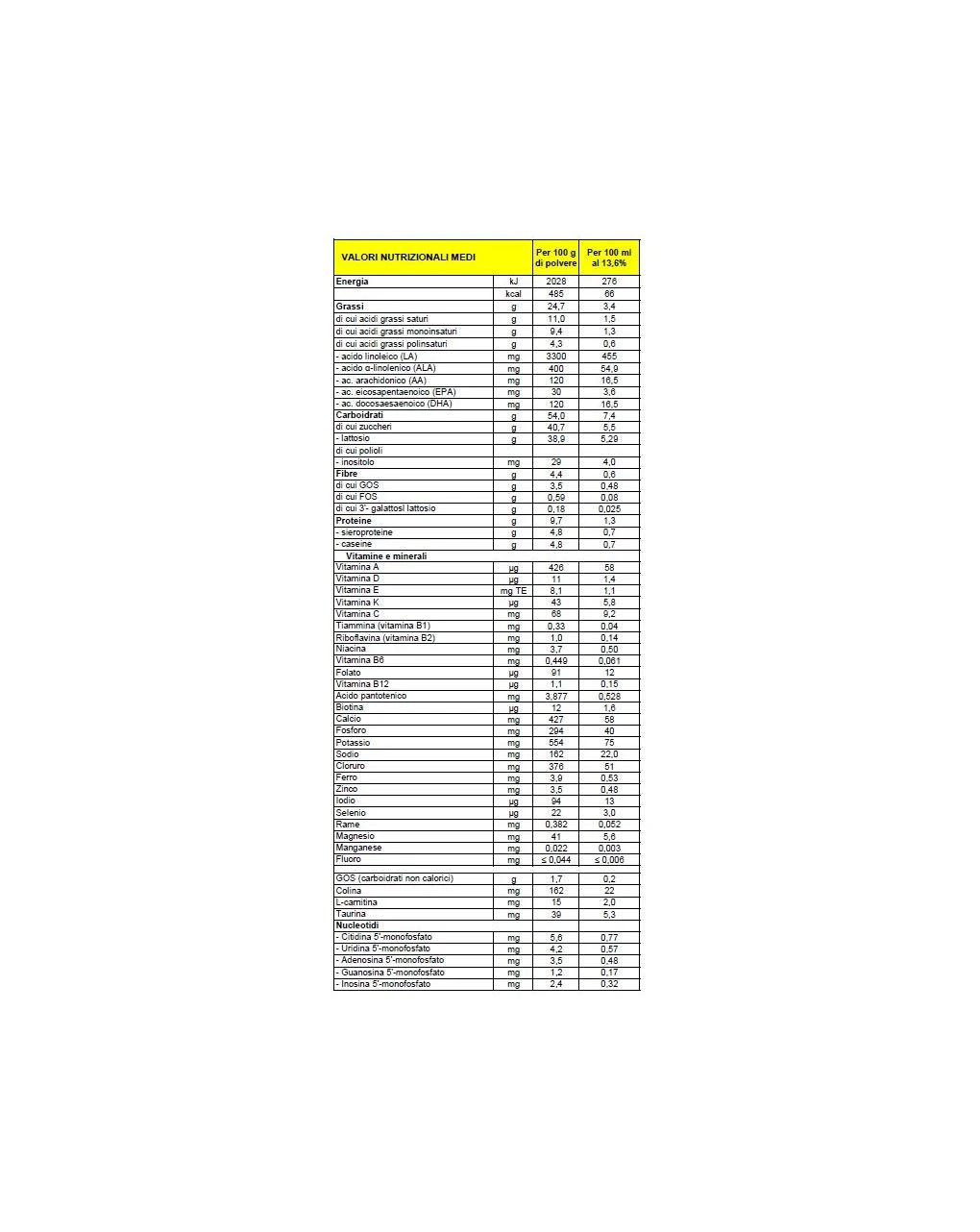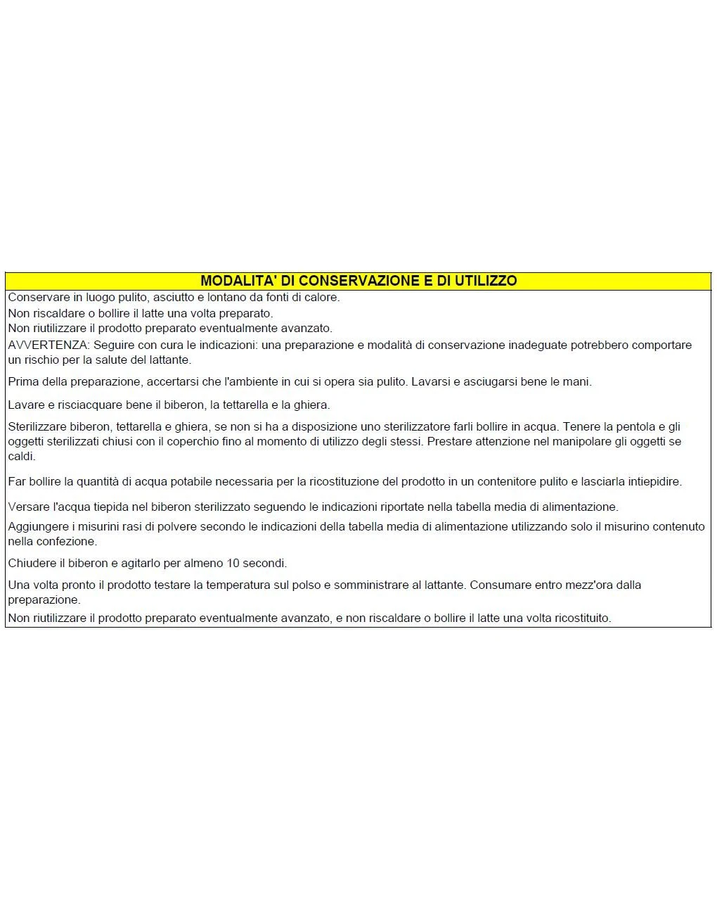 Il prodotto è indicato per l’alimentazione del lattante dalla nascita fino al 6° mese compiuto, quando il latte materno manca o non è sufficiente. Prodotto idoneo per il lattante sin dalla nascita quando non allattato al seno. Contiene DHA*: acido grasso polinsaturo della serie Omega 3.*Come prescritto dalla legge per tutte le formule per lattanti in conformità al Reg. UE 2016/2017.