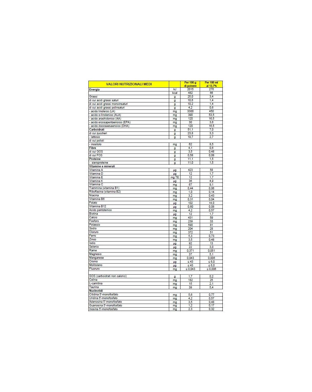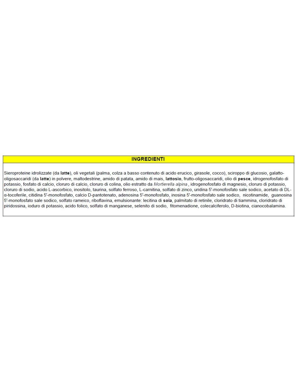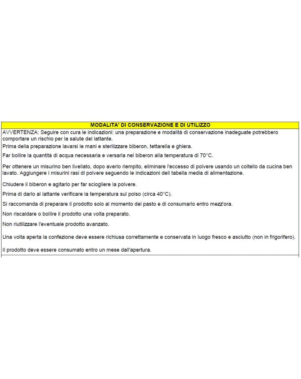 Il prodotto deve essere utilizzato sotto il controllo del Pediatra ed è indicato per lattanti. Il prodotto non deve essere utilizzato come unica fonte di nutrimento nei primi sei mesi di vita. Il prodotto non deve essere utilizzato per via parenterale. Importante: Il latte materno è l’alimento ideale per il lattante. E’ raccomandato come alimento esclusivo fino al sesto mese e come componente lattea di una dieta equilibrata durante lo svezzamento e anche dopo l’anno di vita.