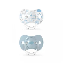 MEMORIES SUCCHIETTO SILICONE 0/6M TETTINA SX PRO 2pz AZZURRO. Il suo scudo simmetrico con nuova tettina simmetrica SX PRO non invasiva offre al bambino la sensazione più naturale possibile e rispetta lo sviluppo del palato. In silicone sottile ultra-morbido leggermente rugoso. La tettina si presenta piatta e simmetrica, con collo più sottile e largo e la testina più corta e piatta.