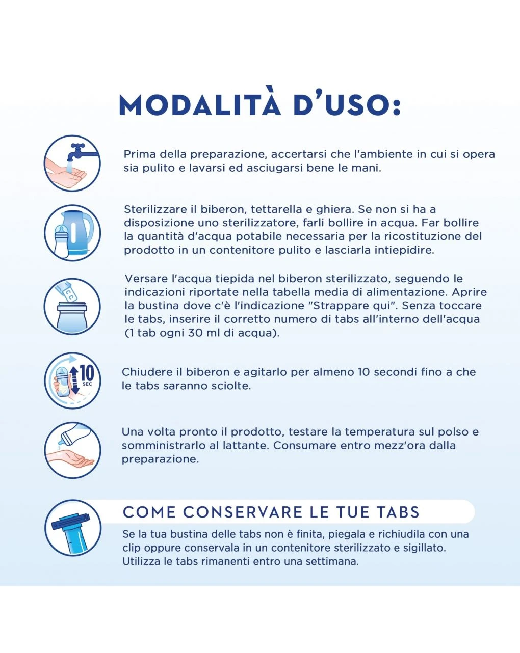 - Più facile da preparare rispetto alla formula in polvere. 1 tab per 30ml di acqua; Facile da preparare. Si dissolve facilmente, è una tab compattata facendo uso solo di aria compressa. Senza misurino, senza sprechi e senza stress.