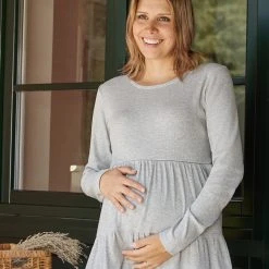 T-shirt premaman in jersey di cotone a costine. Dalla qualità elastica, il tessuto permette una vestibilità confortevole. Ampie balze enfatizzano la linea svasata del capo, aggiungendo un tocco romantico e molto femminile. La zip sottoseno si apre da entrambi i lati grazie ai due cursori, per permettere alla neo mamma di allattare in totale comfort.