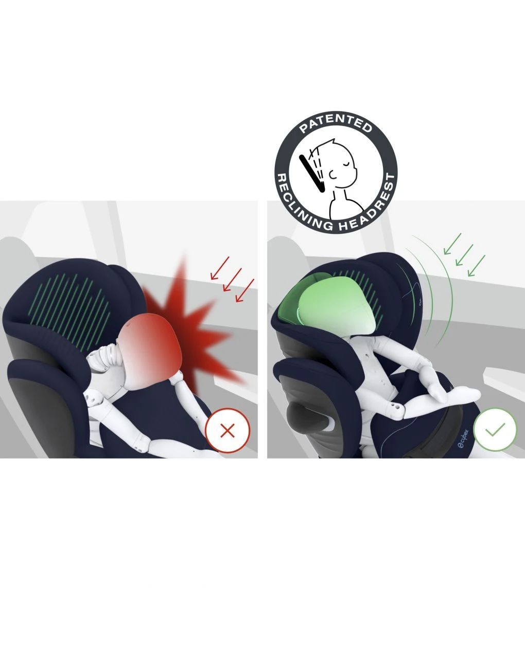 Il tuo bambino è protetto da un cuscino di protezione finché non raggiunge i 21 Kg. A questo punto il cuscino viene rimosso e il seggiolino viene installato con la cintura di sicurezza del veicolo, fornendo una protezione affidabile fino ai 150 cm (circa 12 anni). L’avanzato cuscino di protezione aiuta a ridurre il rischio di lesioni al collo in caso di collisione frontale, con prestazioni superiori rispetto a un sistema di ritenuta con cinturine. In uno scontro frontale il cuscino di protezione agisce in modo simile a un airbag, con la forza d’urto distribuita su tutta la sua ampia superficie. Questo riduce la tensione sul collo e protegge la testa del bambino. ISOFIX e Top Tether assicurano che il seggiolino auto possa essere installato facilmente e in sicurezza. Gli ISOFIX aiutano ad installare correttamente il seggiolino mentre il Top Tether fornisce un ancoraggio aggiuntivo per una maggiore sicurezza e stabilità.