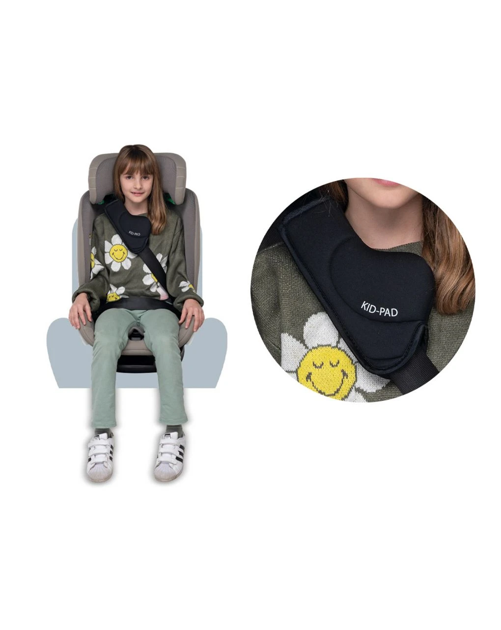 Ulteriore protezione integrata Comfort Kid Pad inclusa, utilizzabile dai 100cm di altezza del bambino. Conforme al regolamento eureopeo R129.