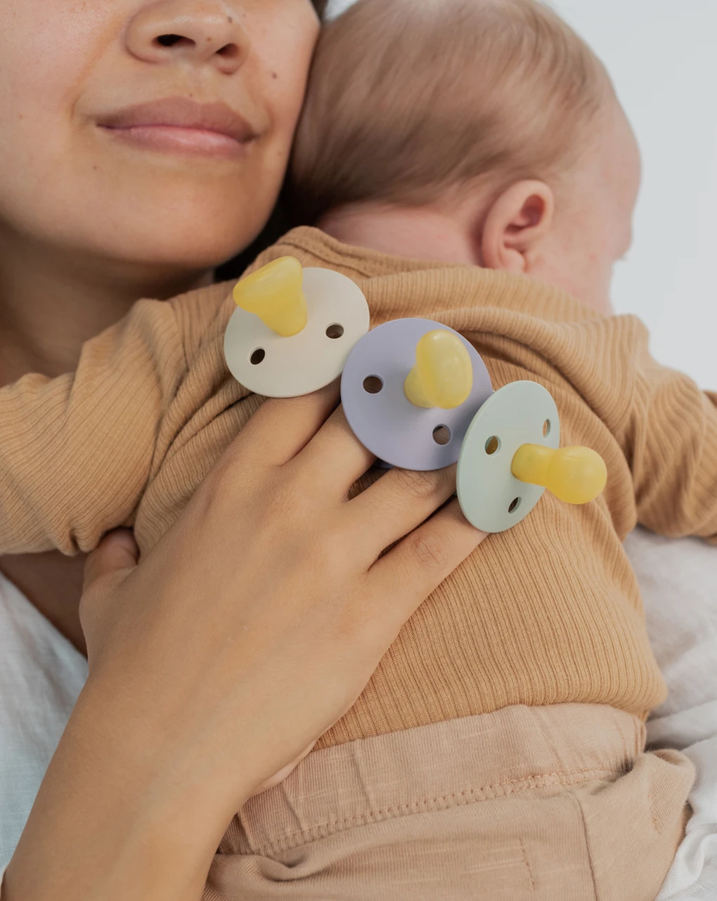 Pulire e sterilizzare il ciuccio giornalmente immergendolo in acqua calda. Si consiglia di non sterilizzare il prodotto in microonde, di non usare detergenti e di non lavare in lavastoviglie. Disegnato e prodotto in Danimarca. Sostituire i ciucci ogni 4-6 settimane.