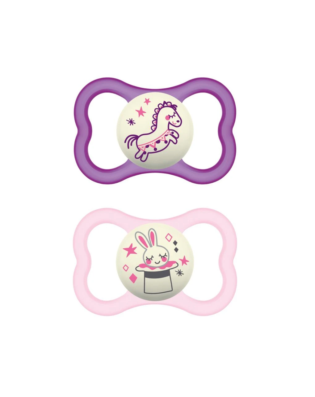 Set da 2 ciucci in silicone Air Night – Ciuccio morbido grazie al design innovativo e al bottone che si illumina al buio