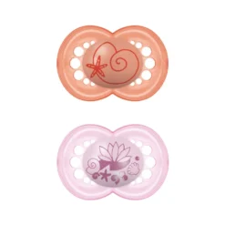 Il colore rosa dei ciucci del set da 2 è particolarmente adatto alle bambine.