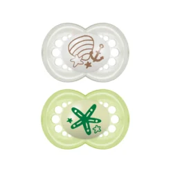 Il colore azzurro dei ciucci del set da 2 è particolarmente adatto ai bambini.