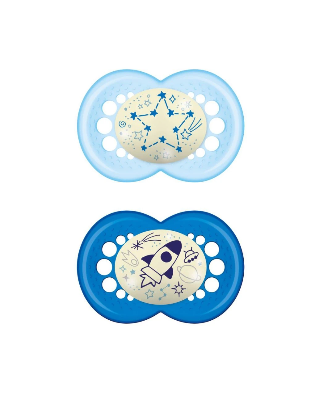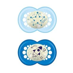 Il ciuccio Original Night è adatto a bimbi di 16+ mesi ed è conforme alla norma EN 1400. Inoltre, esso è ovviamente privo di BPA e BPS. Il colore azzurro di entrambi i ciucci rende il set ideale per bambini di sesso maschile.