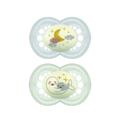 Il ciuccio Original Night è adatto a bimbi di 6-16 mesi ed è conforme alla norma EN 1400. Inoltre, esso è ovviamente privo di BPA e BPS. Il colore azzurro di entrambi i ciucci rende il set ideale per bambini di sesso maschile.