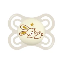 Ciuccio che si illumina al buio – facile da trovare grazie al bottone luminescente. La tettarella è unica nel suo genere: più sottile del 60% e 4 volte più flessibile rispetto alle tettarelle di ciucci analoghi. Consente una chiusura più naturale della bocca. Ciuccio ortodontico progettato per ridurre il rischio di malocclusioni dentali. Clinicamente testato: promuove il corretto sviluppo di denti e mascelle. Progettato in collaborazione con ortodontisti e dentisti pediatrici. Disponibile in silicone MAM SkinSoft™, accettato facilmente dai bambini. Tranquillizza e conforta il bebè. Venduto in una comoda scatola di sterilizzazione e trasporto, per sterilizzare il ciuccio nel microonde in modo pratico e veloce