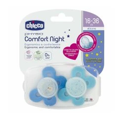 Il massimo comfort per il tuo bimbo! Succhietti PHYSIO Comfort Night: speciale scudo studiato per offrire il massimo Comfort. Con tettina ATTIVA che favorisce attivamente il corretto sviluppo della bocca. L’innovativo, extra ergonomico succhietto di Chicco con tettina ortodontica ATTIVA che favorisce il corretto sviluppo della bocca. Favorisce il naturale posizionamento della lingua. Distribuisce uniformemente la pressione sul palato per un corretto sviluppo orale. Base super sottile, per l’ottimale chiusura della bocca. Physio Comfort Night Silicone 16-36m. Forma extra ergonomica. Lascia ampio spazio alle zone del naso e del mento del bambino, facilitando il movimento e la respirazione. Ampia zona alla base della tettina. La zona attorno alla base della tettina è ampia e ben distanziata dal viso, in modo da lasciare spazio al naturale movimento delle labbra durante la suzione. Appoggio delicato. Il succhietto si appoggia al viso del bambino solo con 4 piccole zone convesse, garantendo così una massima delicatezza