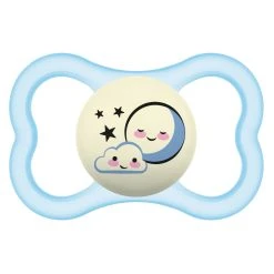 Il ciuccio MAM Supreme Night è per bebè di 16+ mesi, risponde alla norma EN 1400 ed è senza BPA e BPS.