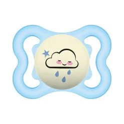 Il ciuccio MAM Supreme Night è per bebè di 2-6 mesi, risponde alla norma EN 1400 ed è senza BPA e BPS.