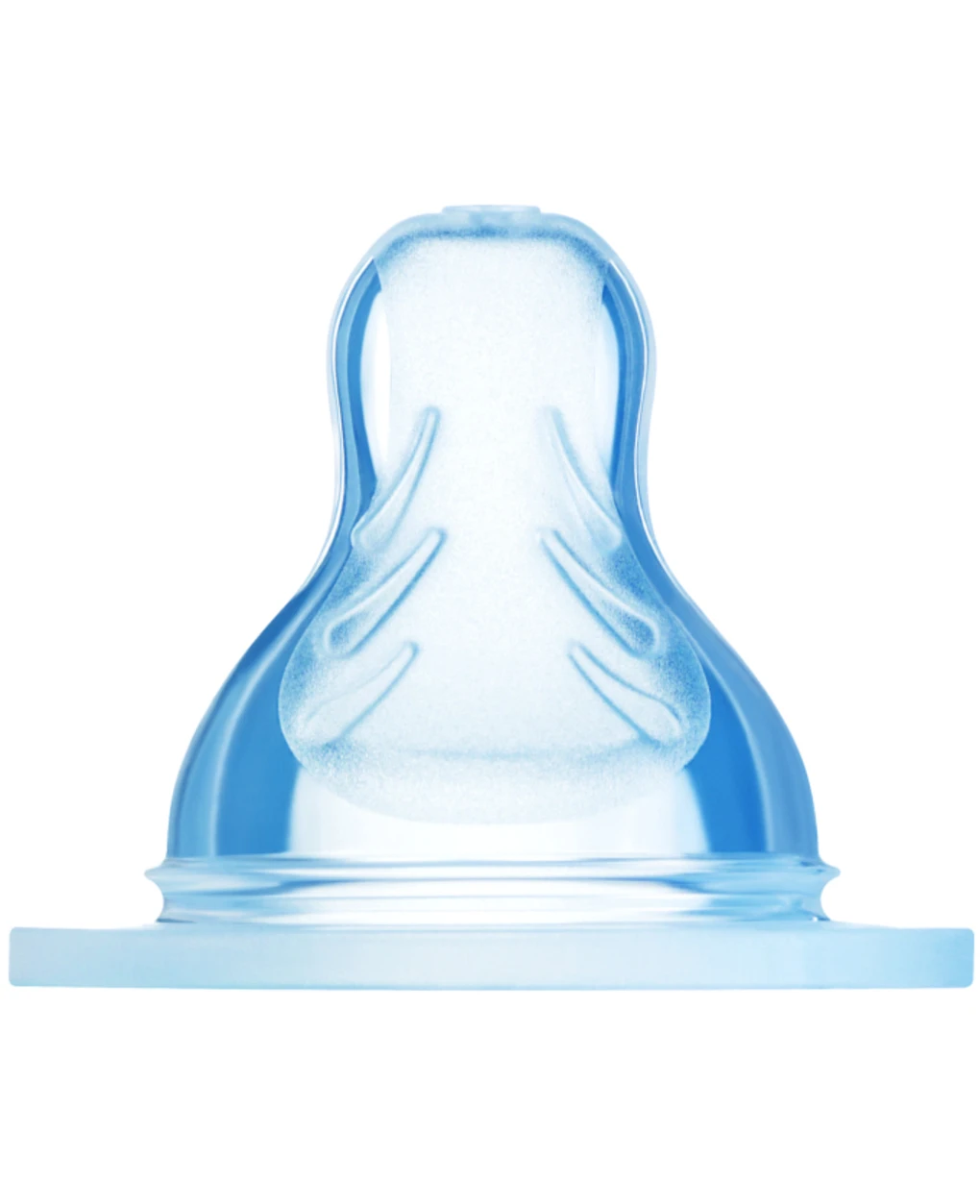 Tettarella morbida con forma allargata ed allungata simile al seno materno con scannellature interne alla tettarella per impedire il collasso (blocco della stessa), con silicone liscio come la seta per stimolare la deglutizione fisiologica (definita peristaltica a strappo). Misura X – flusso rapido: ideale per pappe solubili, taglio a forma di X con grandezza della tettarella adeguata dopo il sesto mese. Materiale: Silikon Seta